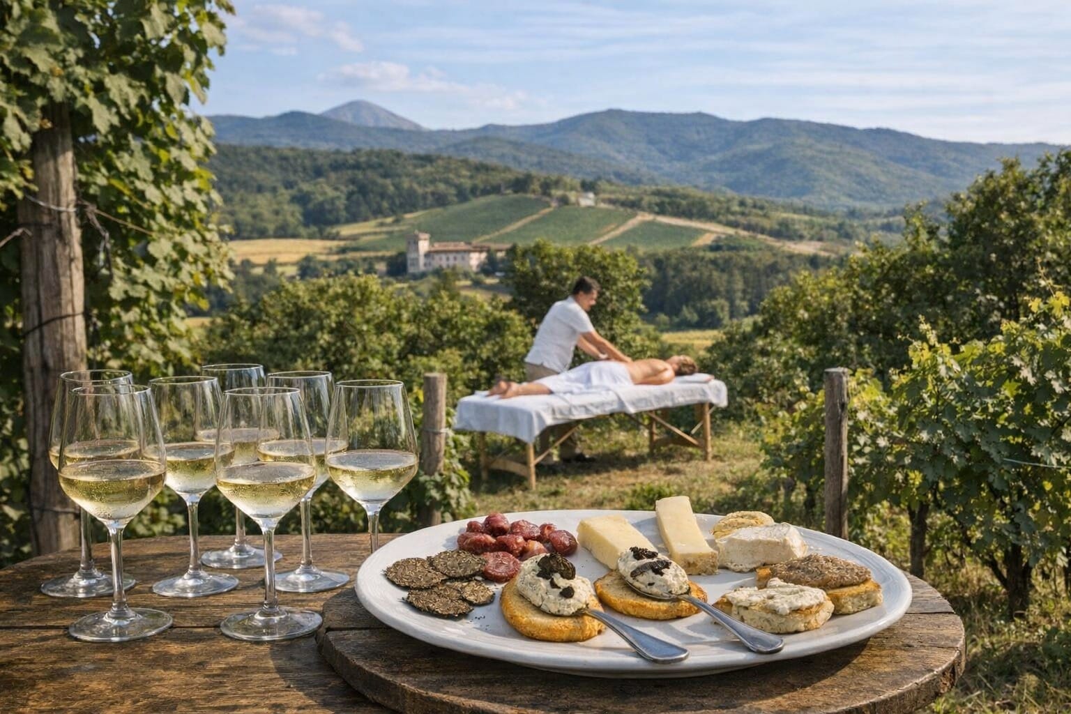 Al termine, il percorso prosegue con un aperitivo selezionato, da gustare in un’atmosfera rilassata. Un calice di vino, accompagnato da prodotti locali, diventa il modo perfetto per completare il rilassamento e trasformare il benessere in un momento di piacere condiviso.